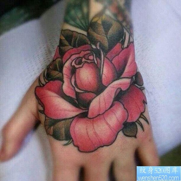 纹身520图库推荐一幅手部彩色玫瑰花纹身图片_玫瑰花纹身图案大全_纹身图吧