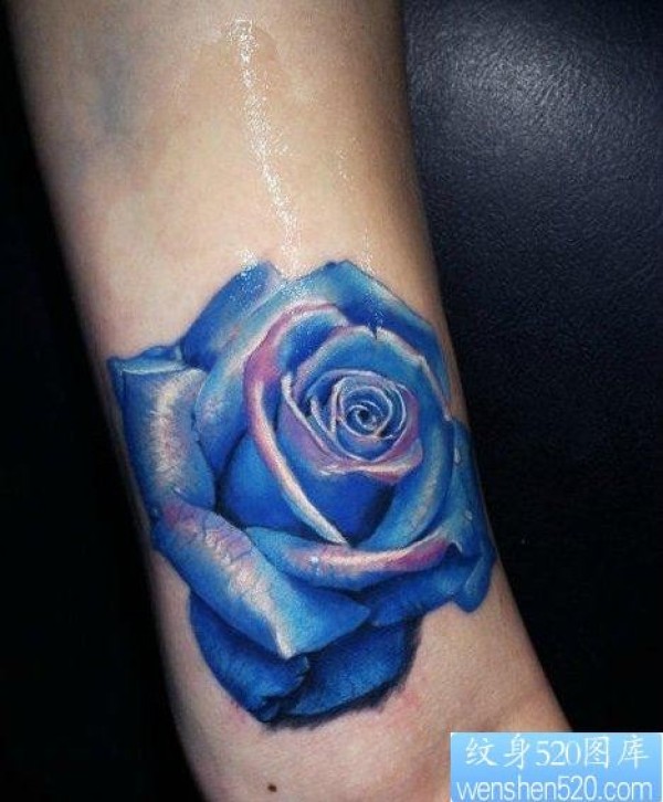 纹身520图库推荐一幅手臂蓝色玫瑰文身图片_玫瑰花纹身图案大全_纹身图吧