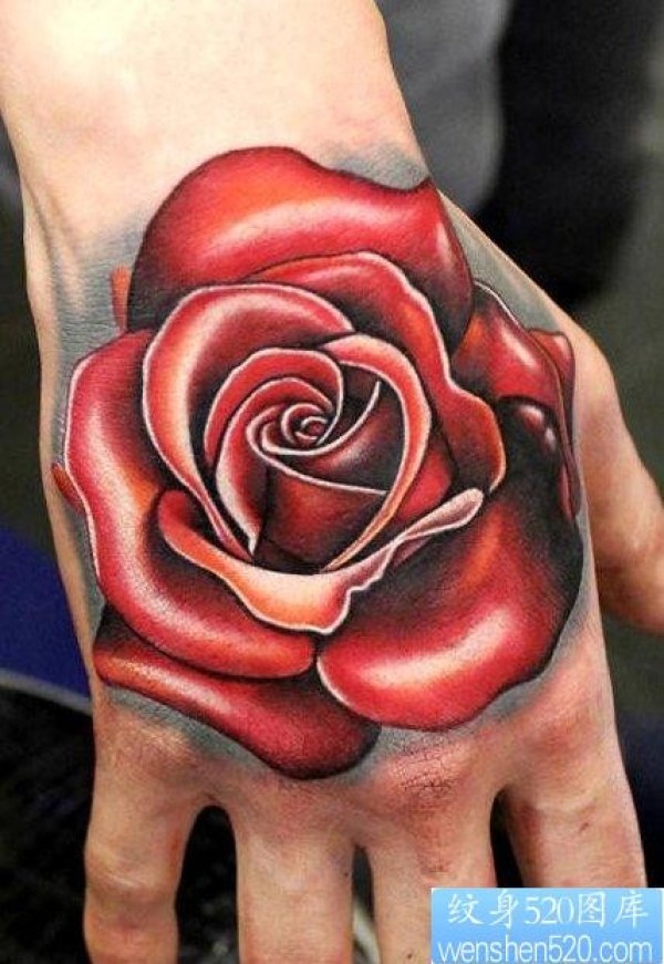 手背上一幅超立体玫瑰花纹身图片_玫瑰花纹身图案大全_纹身图吧