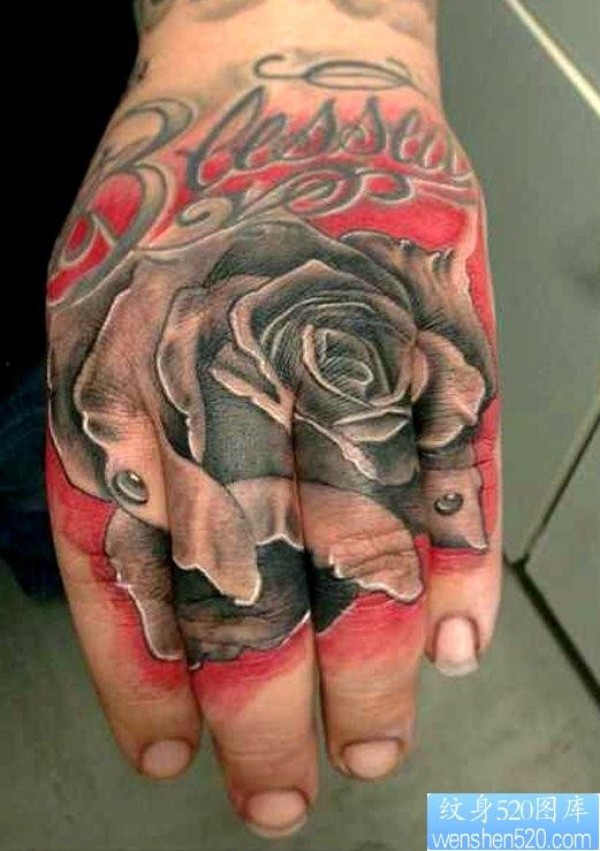 手背上一幅个性的玫瑰花纹身图片_玫瑰花纹身图案大全_纹身图吧