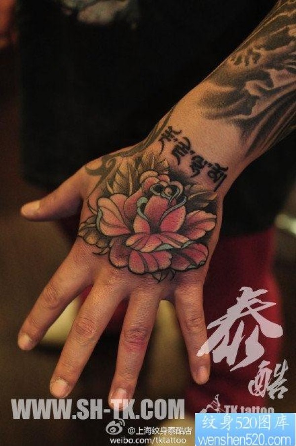 潮男手背大红玫瑰花纹身_玫瑰花纹身图案大全_纹身图吧