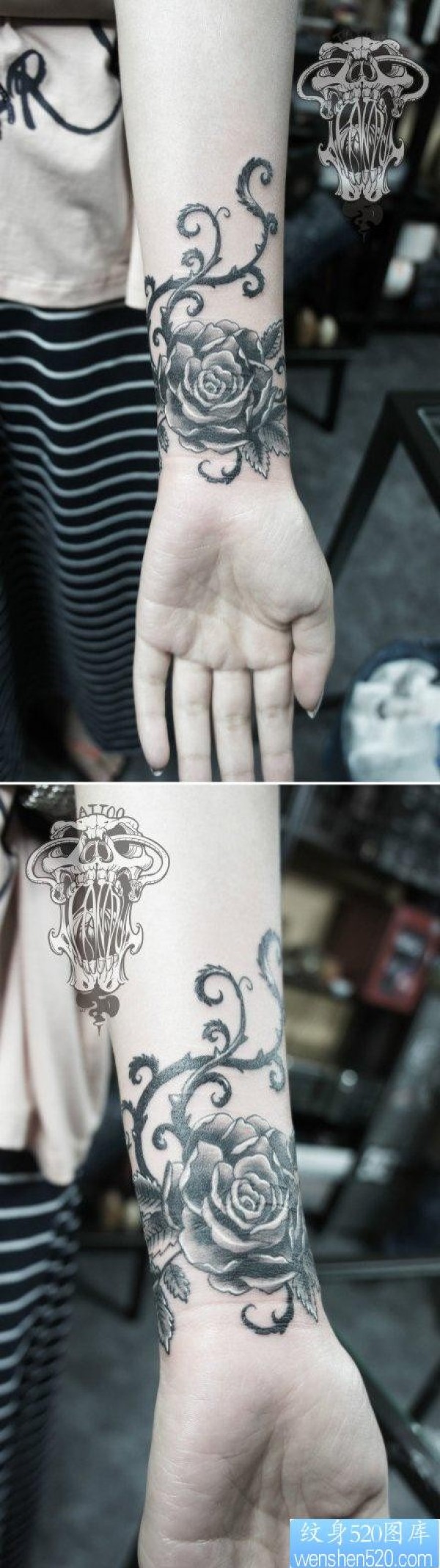女人手臂精美潮流玫瑰花纹身图片_玫瑰花纹身图案大全_纹身图吧