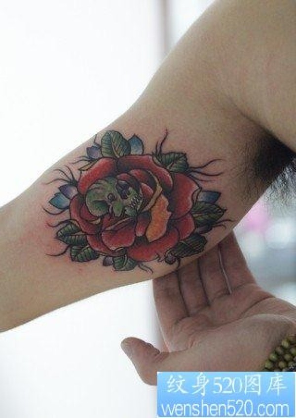 男生手臂潮流流行的玫瑰花纹身图片_玫瑰花纹身图案大全_纹身图吧
