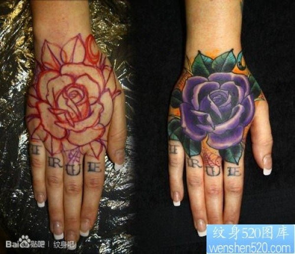 潮男手背大红玫瑰花纹身_玫瑰花纹身图案大全_纹身图吧