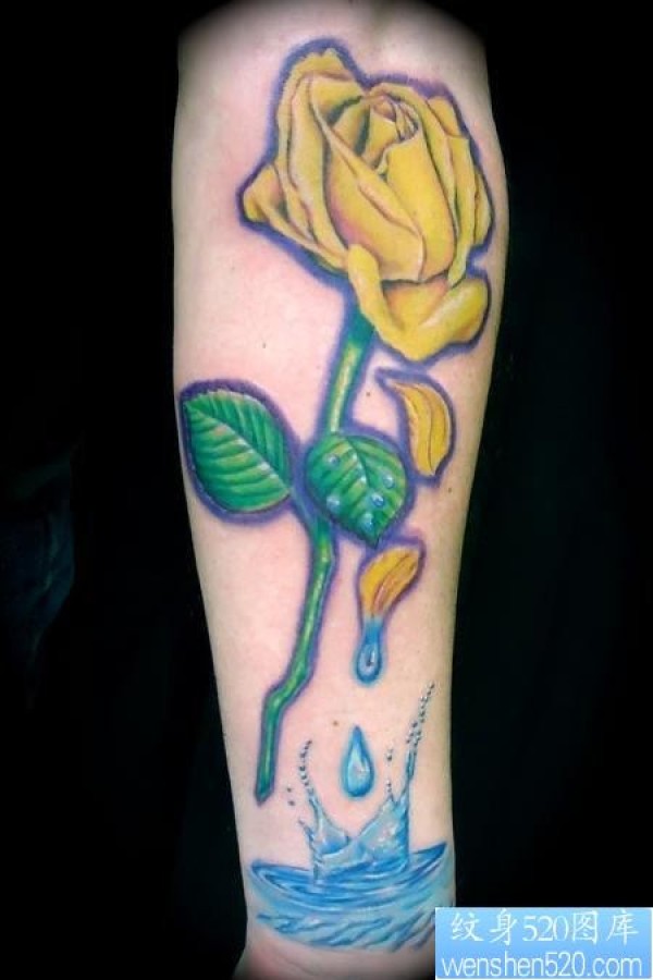 专业文身黄色玫瑰花文身图片作品_玫瑰花纹身图案大全_纹身图吧