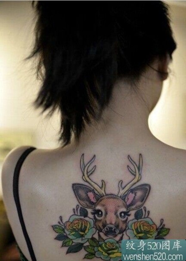 玫瑰可爱小鹿时尚纹身_玫瑰花纹身图案大全_纹身图吧