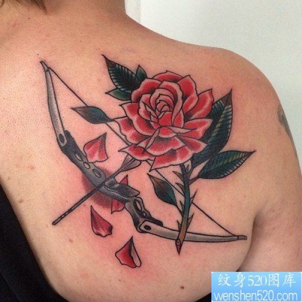 一款背部射手座玫瑰花纹身图案_玫瑰花纹身图案大全_纹身图吧