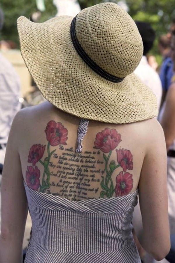 一幅背部玫瑰花字母纹身图片由_玫瑰花纹身图案大全_纹身图吧