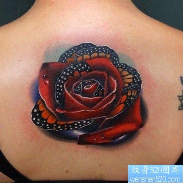 后背潮流唯美的红玫瑰纹身图片_玫瑰花纹身图案大全_纹身图吧