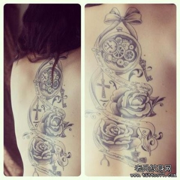 女人手臂时尚经典的怀表与玫瑰花纹身图片_玫瑰花纹身图案大全_纹身图吧