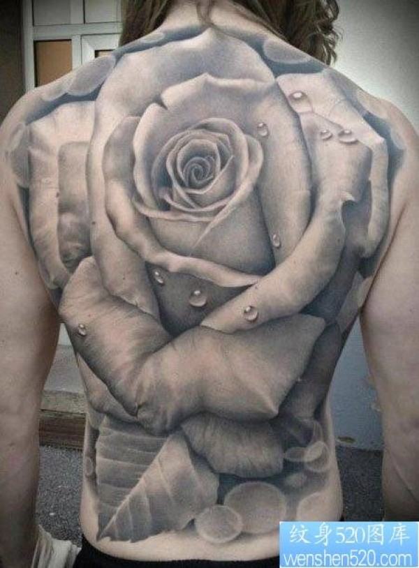 超帅的满背黑灰玫瑰花纹身图片_玫瑰花纹身图案大全_纹身图吧