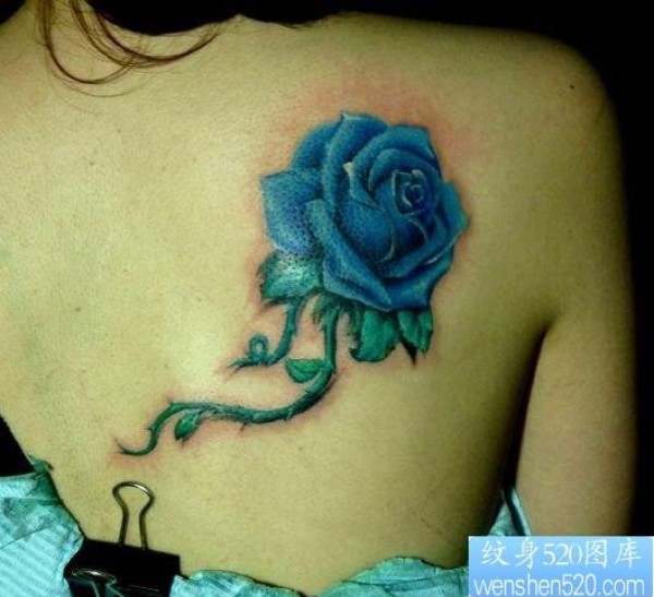 耳后蓝色妖姬玫瑰纹身_玫瑰花纹身图案大全_纹身图吧