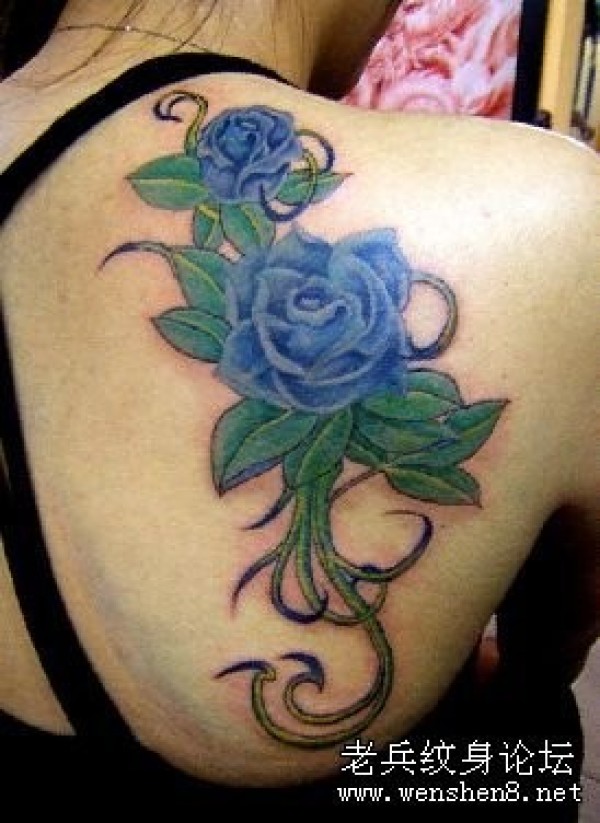 背部彩色玫瑰花纹身图片_玫瑰花纹身图案大全_纹身图吧