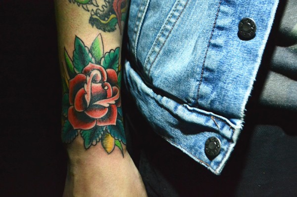 手腕处娇艳的玫瑰花纹身图案手腕处彩色的玫瑰_玫瑰花纹身图案大全_纹身图吧