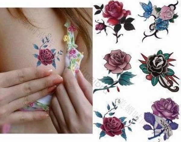 时尚胸部玫瑰花纹身_玫瑰花纹身图案大全_纹身图吧