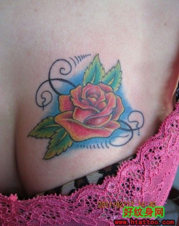 时尚胸部玫瑰花纹身_玫瑰花纹身图案大全_纹身图吧