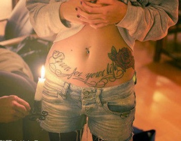 女生腹部的鲜花图案纹身烛光下的玫瑰花图案_玫瑰花纹身图案大全_纹身图吧