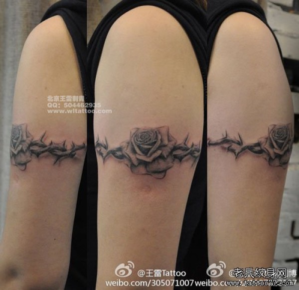 手臂好看经典的玫瑰花与荆条纹身图案_玫瑰花纹身图案大全_纹身图吧