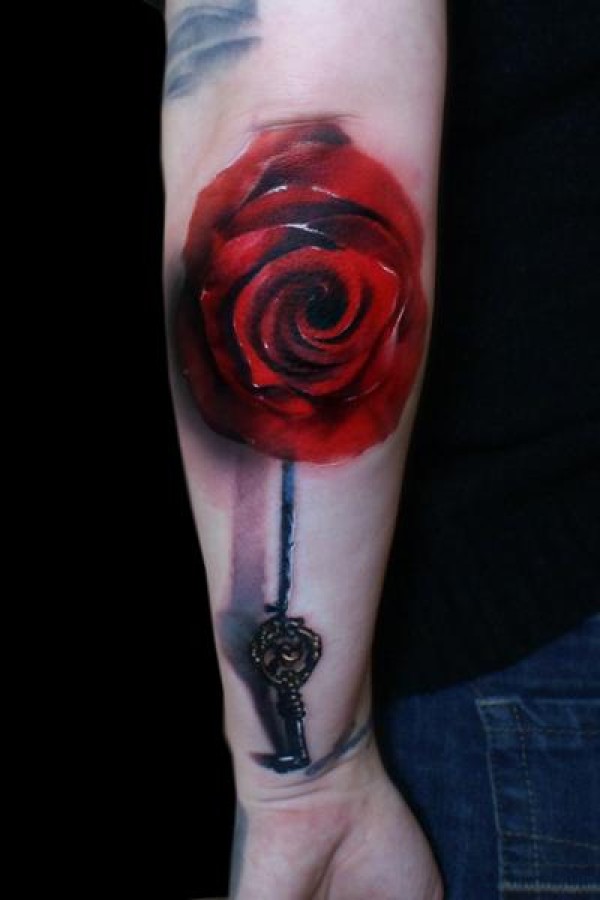 手臂玫瑰钥匙纹身图案_玫瑰花纹身图案大全_纹身图吧