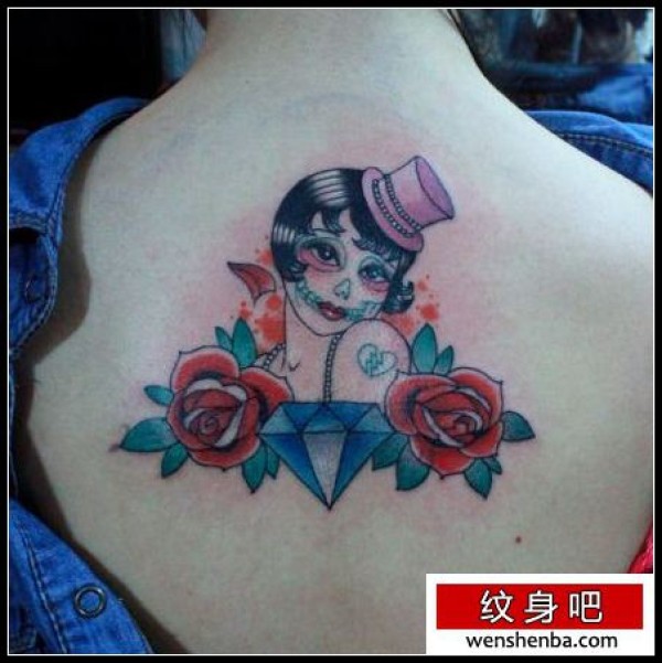 彩色美女玫瑰花钻石纹身图案_玫瑰花纹身图案大全_纹身图吧