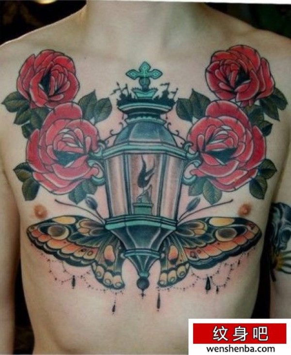 胸部好看的玫瑰花纹身图案_玫瑰花纹身图案大全_纹身图吧
