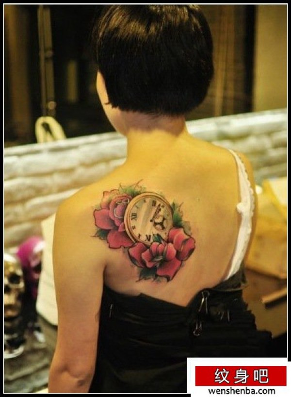 彩色玫瑰怀表纹身图案_玫瑰花纹身图案大全_纹身图吧