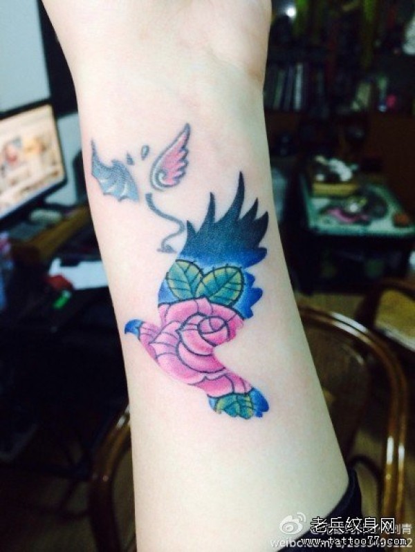 女生小手臂小鸟玫瑰花纹身图案_玫瑰花纹身图案大全_纹身图吧