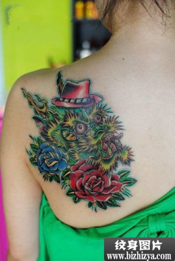 创意动物玫瑰纹身图案图片_玫瑰花纹身图案大全_纹身图吧