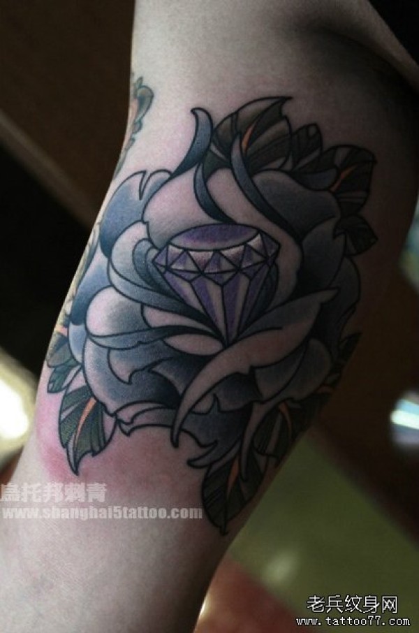 手臂内侧潮流精美的钻石与玫瑰纹身图案_玫瑰花纹身图案大全_纹身图吧