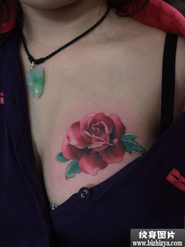 时尚胸部玫瑰花纹身_玫瑰花纹身图案大全_纹身图吧