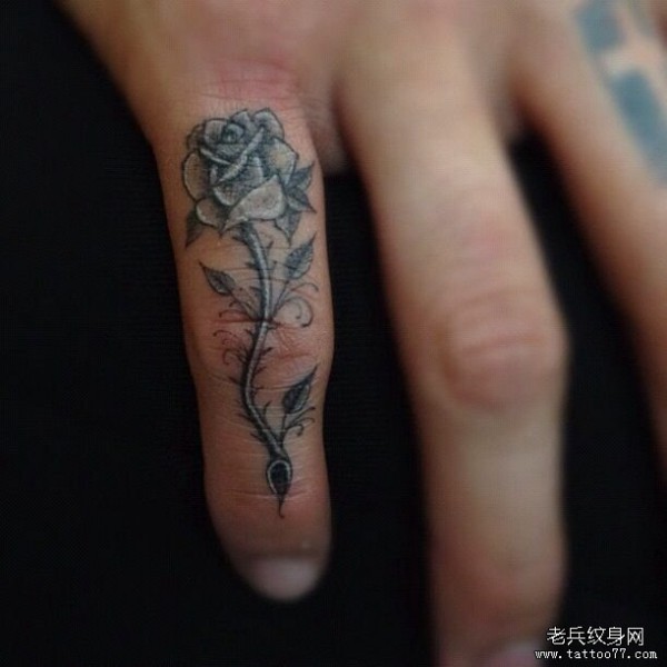 手指纹身之玫瑰花纹身图案作品图片欣赏_玫瑰花纹身图案大全_纹身图吧