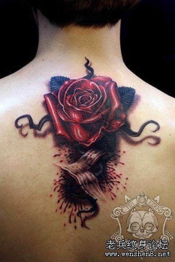 后背玫瑰花纹身图案_玫瑰花纹身图案大全_纹身图吧