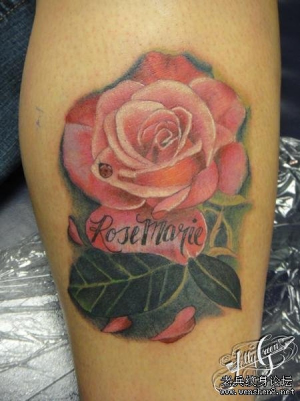腿部纹身图案腿部玫瑰花纹身图案_玫瑰花纹身图案大全_纹身图吧