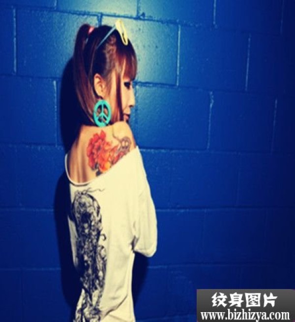 时尚美女肩部玫瑰花纹身图案图片_玫瑰花纹身图案大全_纹身图吧
