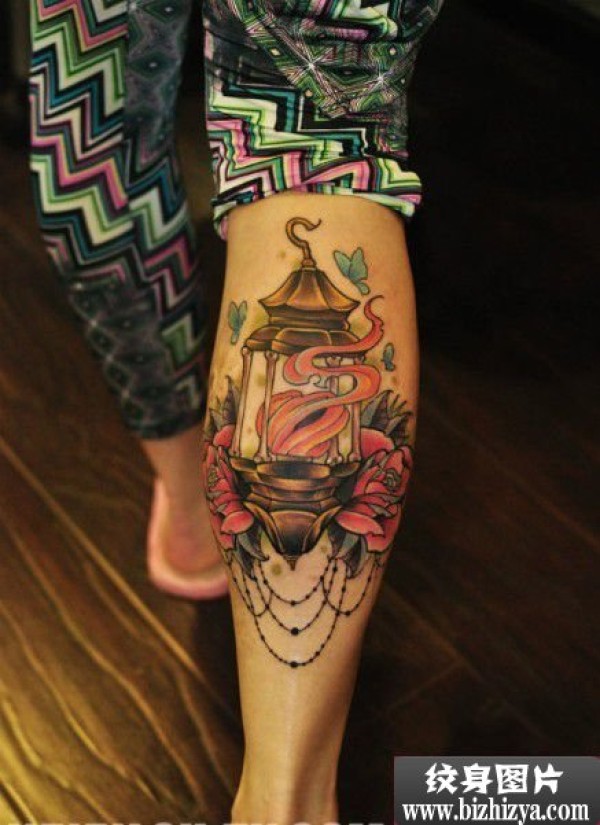 小腿油灯玫瑰欧美纹身图案图片_玫瑰花纹身图案大全_纹身图吧
