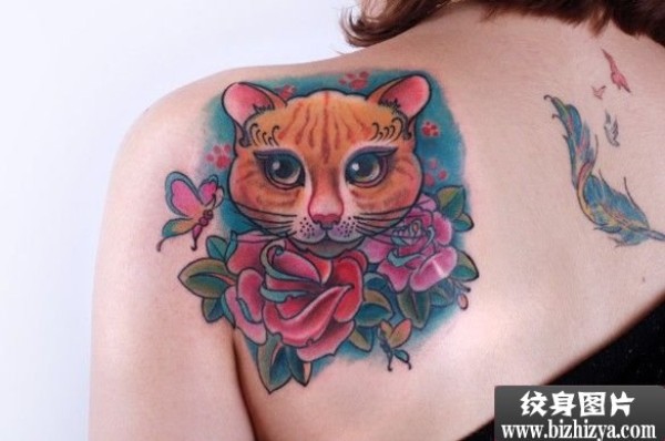 可爱猫咪头像玫瑰纹身图案图片_玫瑰花纹身图案大全_纹身图吧