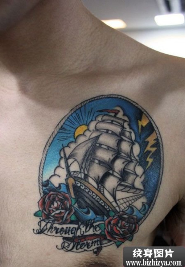 行驶帆船玫瑰纹身图案图片_玫瑰花纹身图案大全_纹身图吧