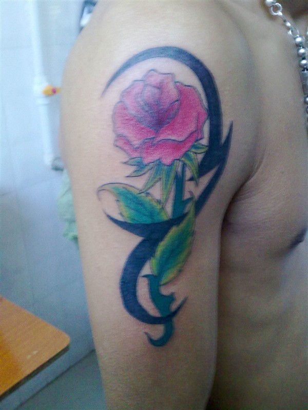 天津小东66纹身图库作品肩部玫瑰花纹身图案_玫瑰花纹身图案大全_纹身图吧