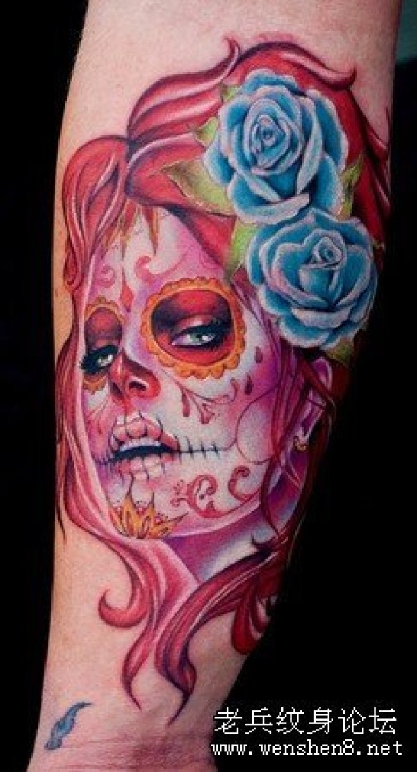 手臂彩色欧美美女玫瑰花纹身_玫瑰花纹身图案大全_纹身图吧
