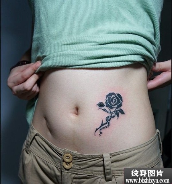 性感蕾丝玫瑰腹部纹身_玫瑰花纹身图案大全_纹身图吧