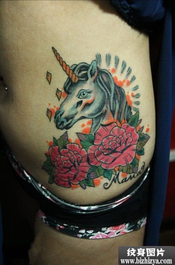 欧美独角兽玫瑰花纹身图案图片_玫瑰花纹身图案大全_纹身图吧
