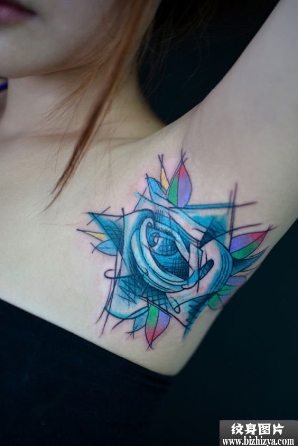 腋下创意蓝色玫瑰花纹身图案图片_玫瑰花纹身图案大全_纹身图吧