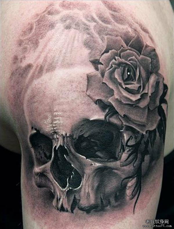 66纹身图库推荐一款手臂骷髅玫瑰花纹身图案_玫瑰花纹身图案大全_纹身图吧