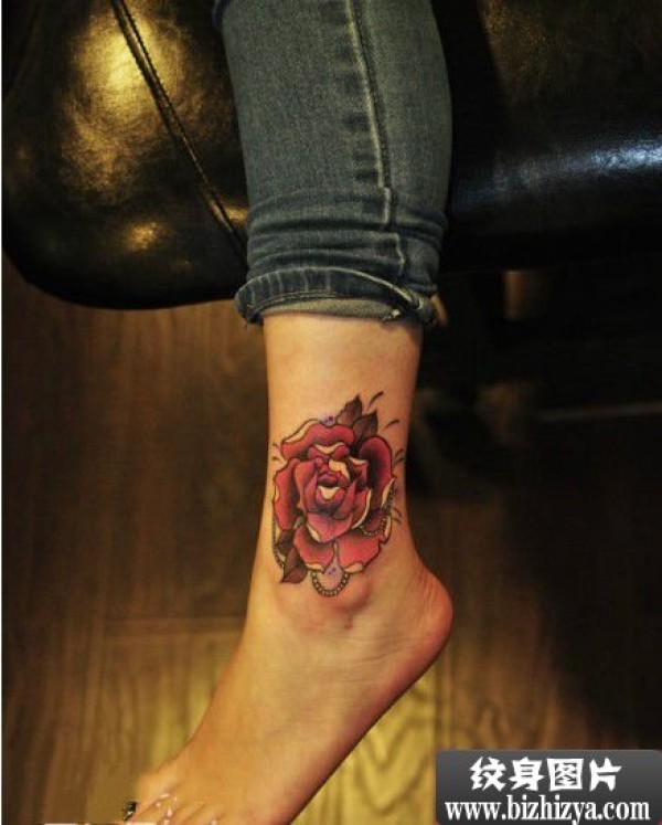 娇艳玫瑰花脚踝纹身图案图片_玫瑰花纹身图案大全_纹身图吧