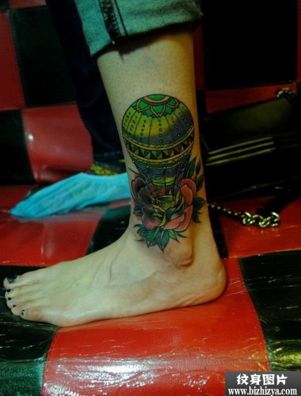 玫瑰热气球个性纹身图片图案图片_玫瑰花纹身图案大全_纹身图吧