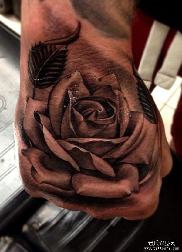 手背上一款素描立体玫瑰花纹身图案_玫瑰花纹身图案大全_纹身图吧