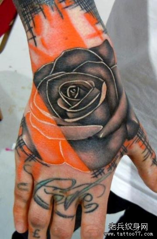 潮男手背大红玫瑰花纹身_玫瑰花纹身图案大全_纹身图吧