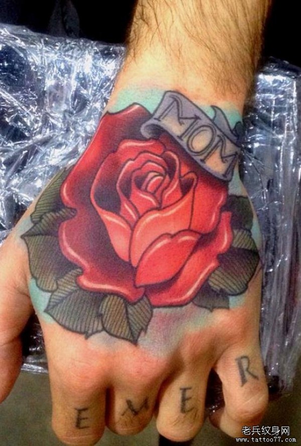 潮男手背大红玫瑰花纹身_玫瑰花纹身图案大全_纹身图吧