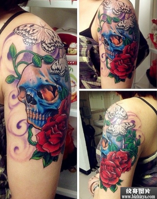 玫瑰与骷髅创意手臂纹身图案图案图片_玫瑰花纹身图案大全_纹身图吧