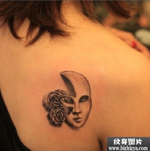 后肩欧美面具玫瑰纹身图案图片_玫瑰花纹身图案大全_纹身图吧